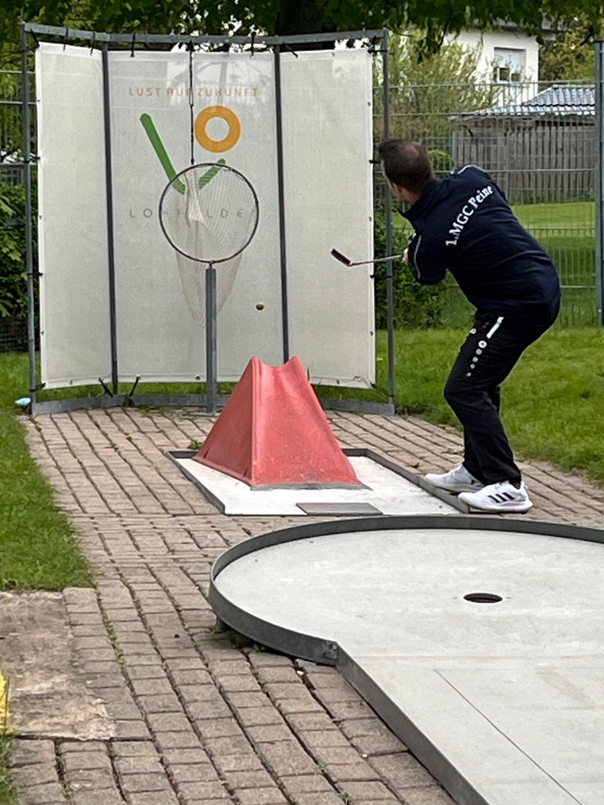Team II: Auch am heutigen Spieltag stellte sich für die Peiner Landesligisten als derzeitiger Favorit erst gar nicht die Frage ,,ob“ sie gewinnen werden, sondern eher das ,,Wie“. Jetzt hatte die Peiner Zweitvertretung mit Christian Spandau, Torsten Fellenberg, Cornelia Kampe, Christian Arendt und Frank Grunert mit einer tollen Mannschaftsleistung von 378 Schlag und acht Punkten nämlich schon wieder gewonnen, und das außerdem noch haushoch. Beim gastgebenden Miniaturgolfverein Lohfelden konnten die Aktiven aus der Fuhsestadt mit ihrem Sieg und 38 Schlag Vorsprung die Konkurrenz gehörig auf die Plätze verweisen. ,,Das waren sogar noch neun Schlag mehr als am Spieltag zuvor, und diesmal ohne einer gespielten ,,18“,“ stellte Kapitän Torsten Fellenberg fest. Den zweiten Platz belegte 1. BGC Wolfsburg I (416/6) vor 1. MGC Göttingen III (435/4), 1. MGC Lohfelden I (449/2) und 1. MGC Kassel-Vellmar II (461/0). Bester Peiner Spieler und auch Sieger des Turniers war Torsten Fellenberg mit 91 Schlag vor Frank Grunert (95) als zweitbester Peiner und Tabellenzweiter und Christian Spandau als Tabellenvierter von insgesamt 27 Teilnehmern.
