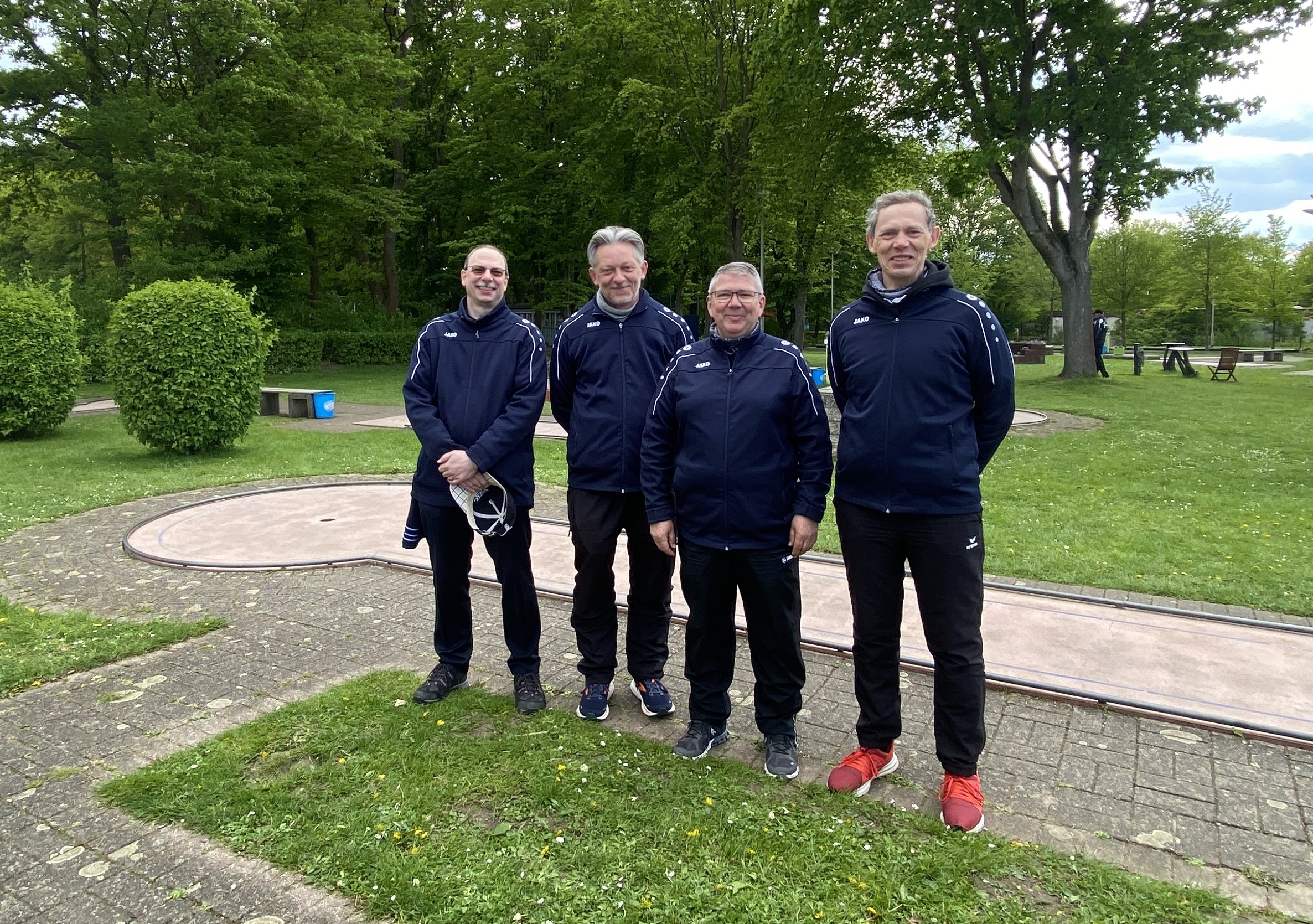 Am 21. April fand in Hannover die Erste von zwei Landesranglisten des Minigolfverbandes Bremen/Niedersachsen statt um die Teilnehmer für die Deutschen Meisterschaften auf den verschiedenen Systemen zu ermitteln. Diese gilt für die Qualifikation im Einzel sowie in der Mannschafts-wertung. In Hannover wurde auf den 12m langen Betonbahnen gespielt, wo es vorrangig um die Spieler*innen ging, welche die Beton DM in Herten oder die Kombi DM in Neutraubling (D & H) / Tempelhof (Senioren) spielen möchten. Vom 1. MGC Peine war wieder die Senioren-mannschaft mit Christian Spandau, Jörg Gehrke, Frank Quandt und Frank Grunert am Start, welche letztes Jahr den 2. Platz errang, unter neun Vereinsmannschaften. Alle vier Senioren waren zudem auch für die Einzelwertung qualifiziert. Komplettiert wurde das Quartett von Luis Neidenberger, der leider als einziger Jugendlicher an den Start ging und seinen Startplatz für die Jugend DM in Bildstock bereits sicher hat.